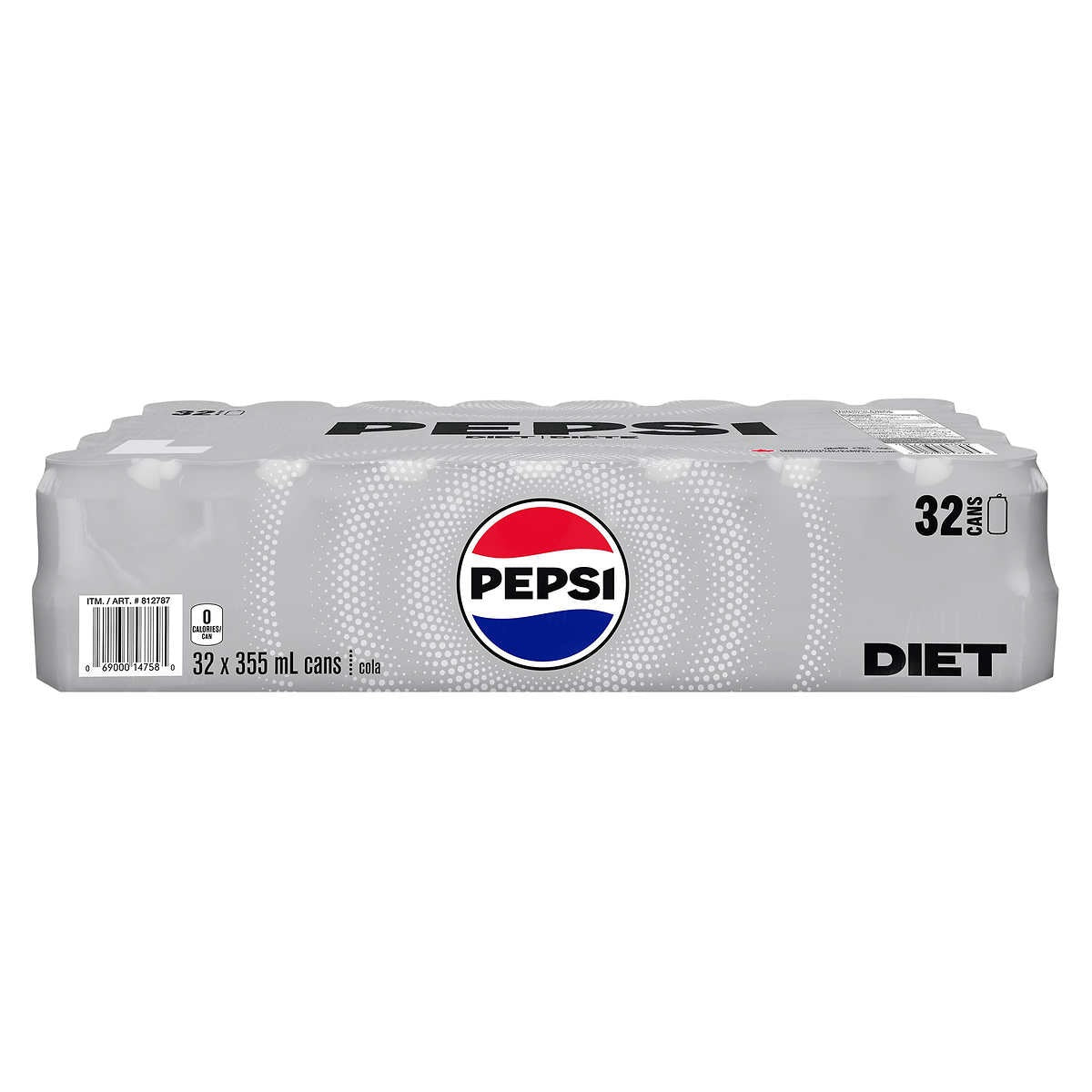 Pepsi Diet, 32 x 355 mL + Pepsi Diet, 32 x 355 mL - is currently on backorder. You may still purchase now though and we'll ship as soon as more become available. For actual quantity, refer to product title and description, if different from image