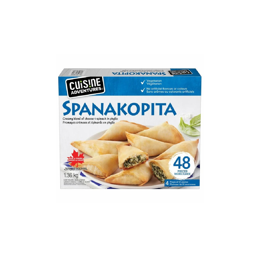Cuisine Adventure Frozen Spanakopita, 1.4 kg + Cuisine Adventure Frozen Spanakopita, 1.4 kg - is currently on backorder. You may still purchase now though and we'll ship as soon as more become available. For actual quantity, refer to product title and description, if different from image