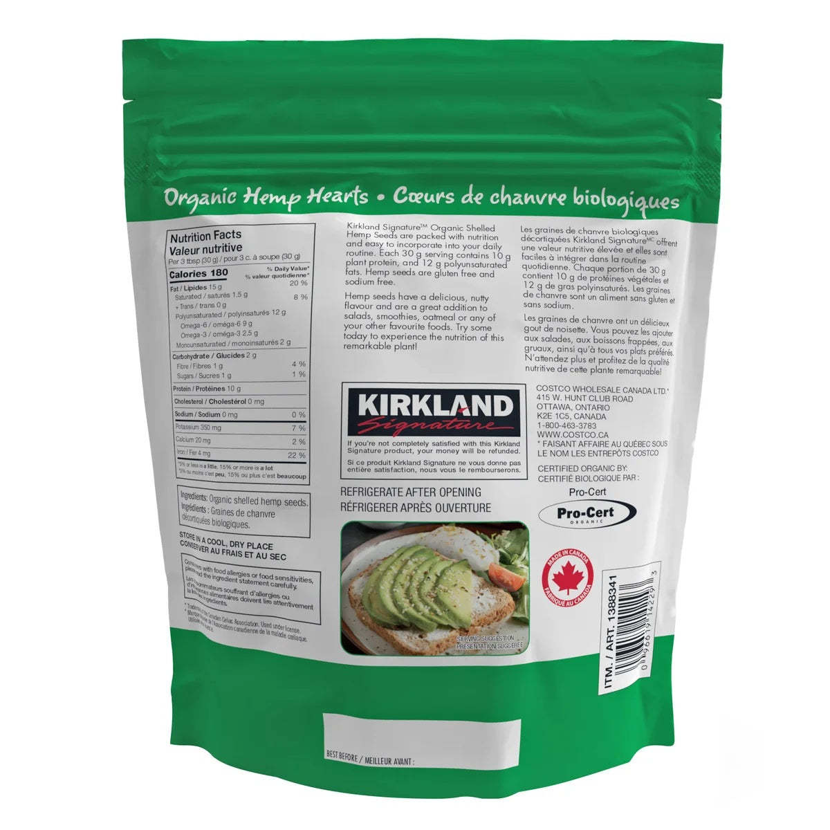 Kirkland Organic Hemp Hearts, 907 g + Kirkland Organic Hemp Hearts, 907 g - is currently on backorder. You may still purchase now though and we'll ship as soon as more become available. For actual quantity, refer to product title and description, if different from image