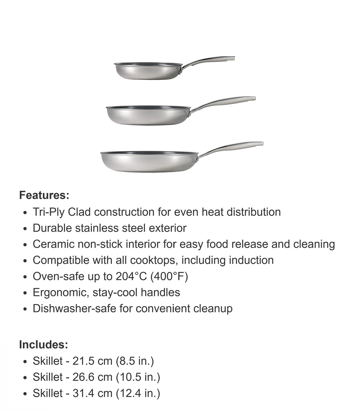 Tramontina Stainless Steel with Ceramic Non-stick Skillet, 3 skillets - is currently on backorder. You may still purchase now though and we'll ship as soon as more become available.