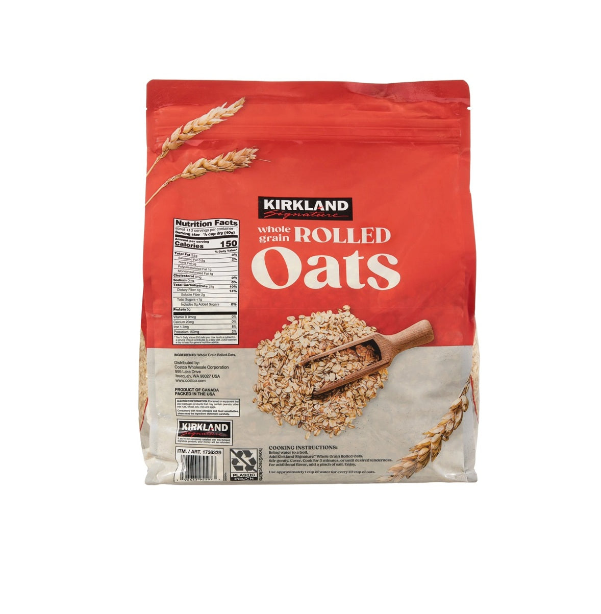 Kirkland Whole Grain Rolled Oats, 4.5 kg + Kirkland Whole Grain Rolled Oats, 4.5 kg - is currently on backorder. You may still purchase now though and we'll ship as soon as more become available. For actual quantity, refer to product title and description, if different from image