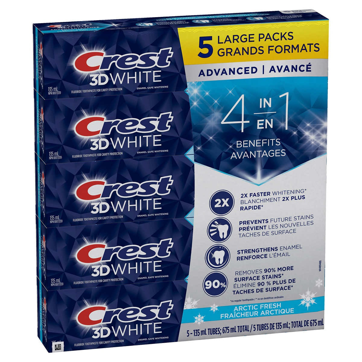 Crest 3D White Advanced Toothpaste, 5 x 135 mL + Crest 3D White Advanced Toothpaste, 5 x 135 mL - is currently on backorder. You may still purchase now though and we'll ship as soon as more become available. For actual quantity, refer to product title and description, if different from image