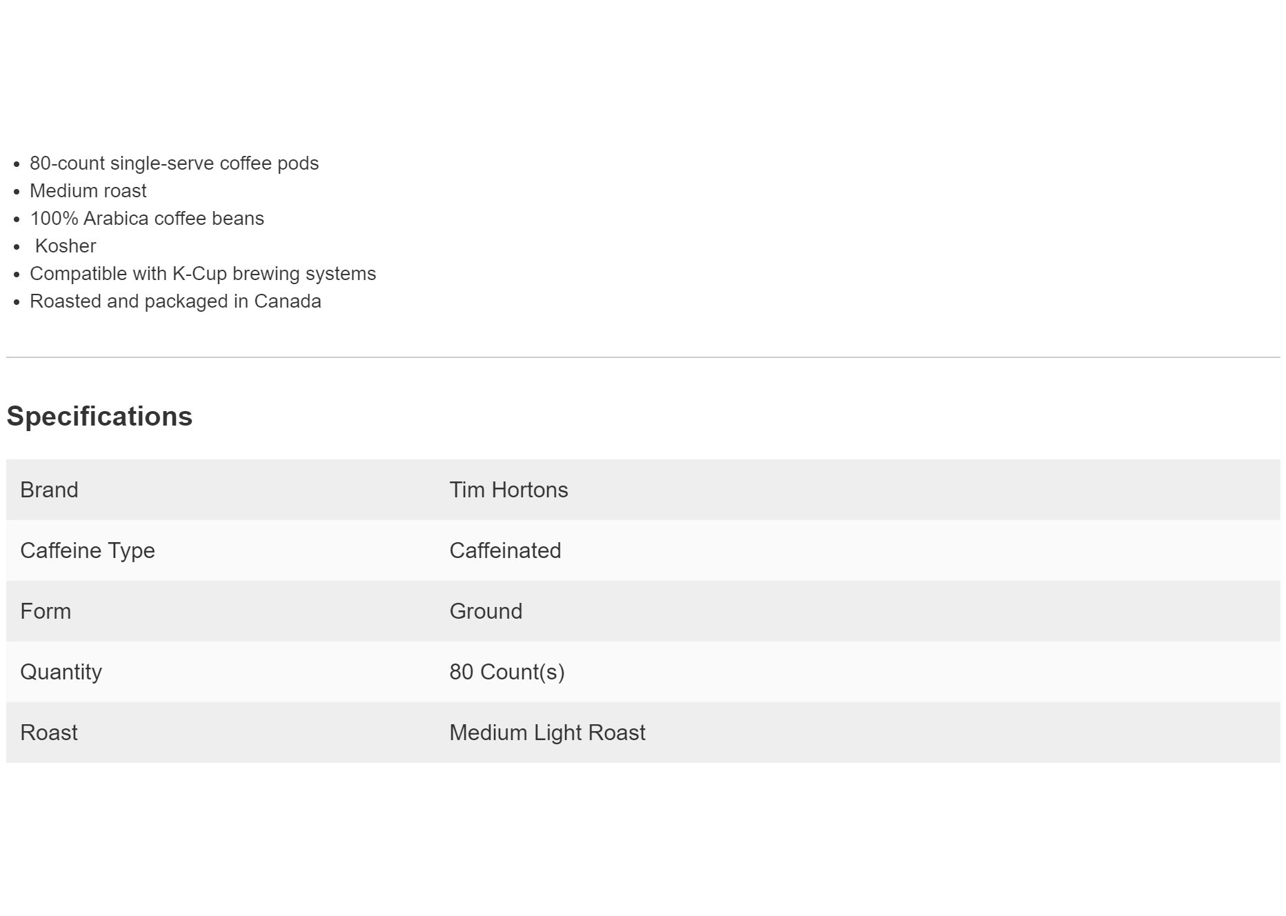 • Tim Hortons Original Blend Keurig K-Cup, 80 cups