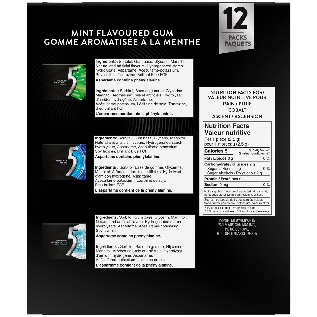Wrigley’s 5 Mint Gum Variety Pack, 12 x 15 units + Wrigley’s 5 Mint Gum Variety Pack, 12 x 15 units - is currently on backorder. You may still purchase now though and we'll ship as soon as more become available. For actual quantity, refer to product title and description, if different from image