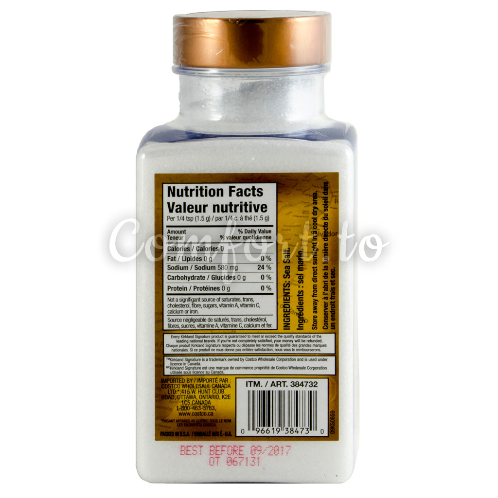 Kirkland Sea Salt, 850 g + Kirkland Sea Salt, 850 g - is currently on backorder. You may still purchase now though and we'll ship as soon as more become available. For actual quantity, refer to product title and description, if different from image