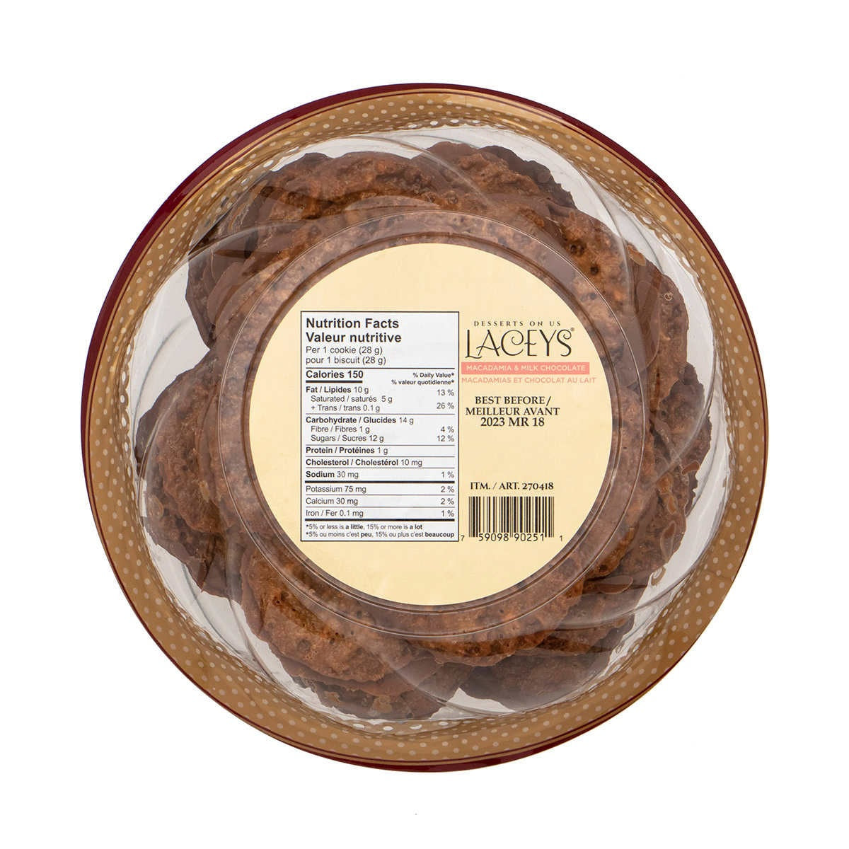 Lacey's Milk chocolate Macadamia cookies, 850 g + Lacey's Milk chocolate Macadamia cookies, 850 g - is currently on backorder. You may still purchase now though and we'll ship as soon as more become available. For actual quantity, refer to product title and description, if different from image